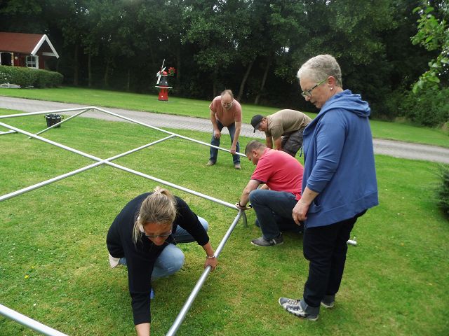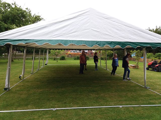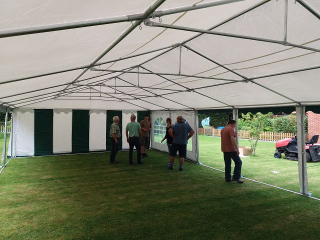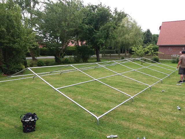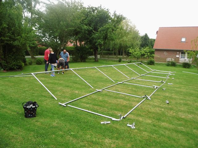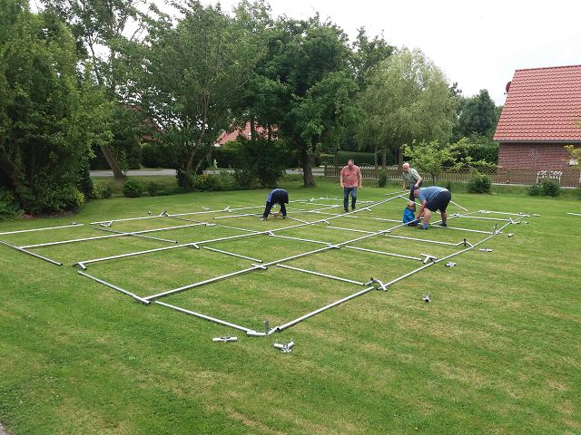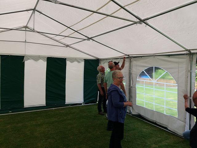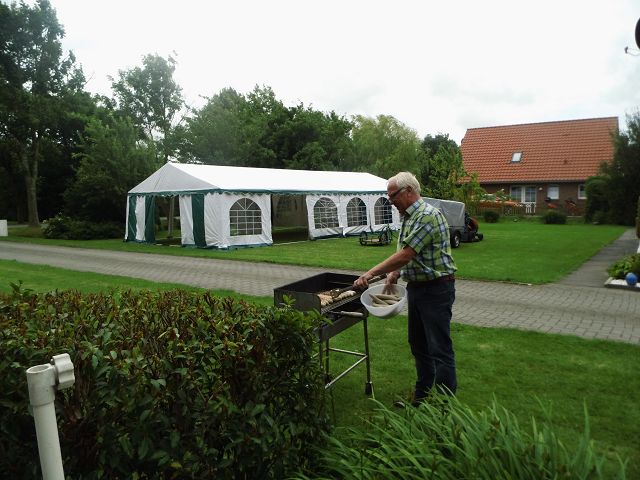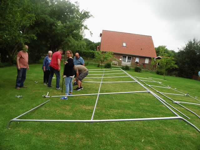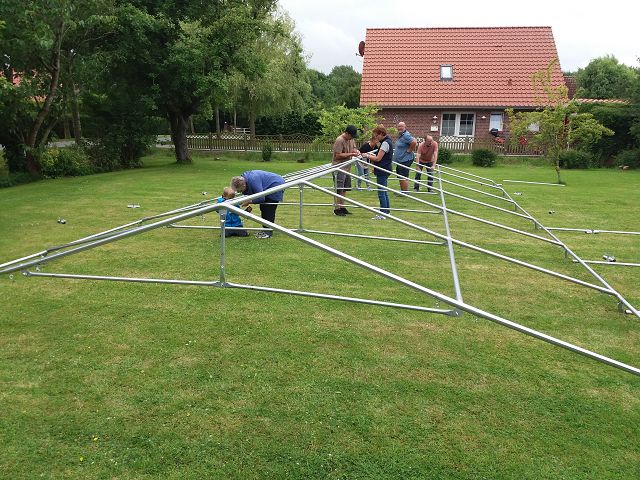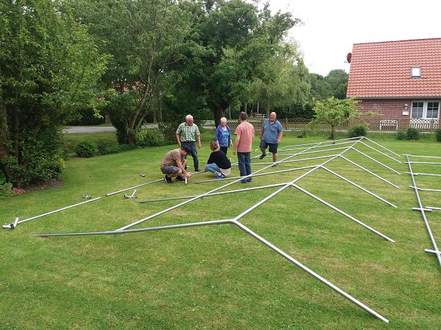 Unsere Dorfgemeinschaft hat beschlossen ein Zelt und einen Anhänger zu kaufen. Dieses Zelt wurde zur Probe am 08.07.2017 bei Jürgen Müller aufgebaut. Anschließend gab es für die Helfer noch eine Leckerei vom Grill.